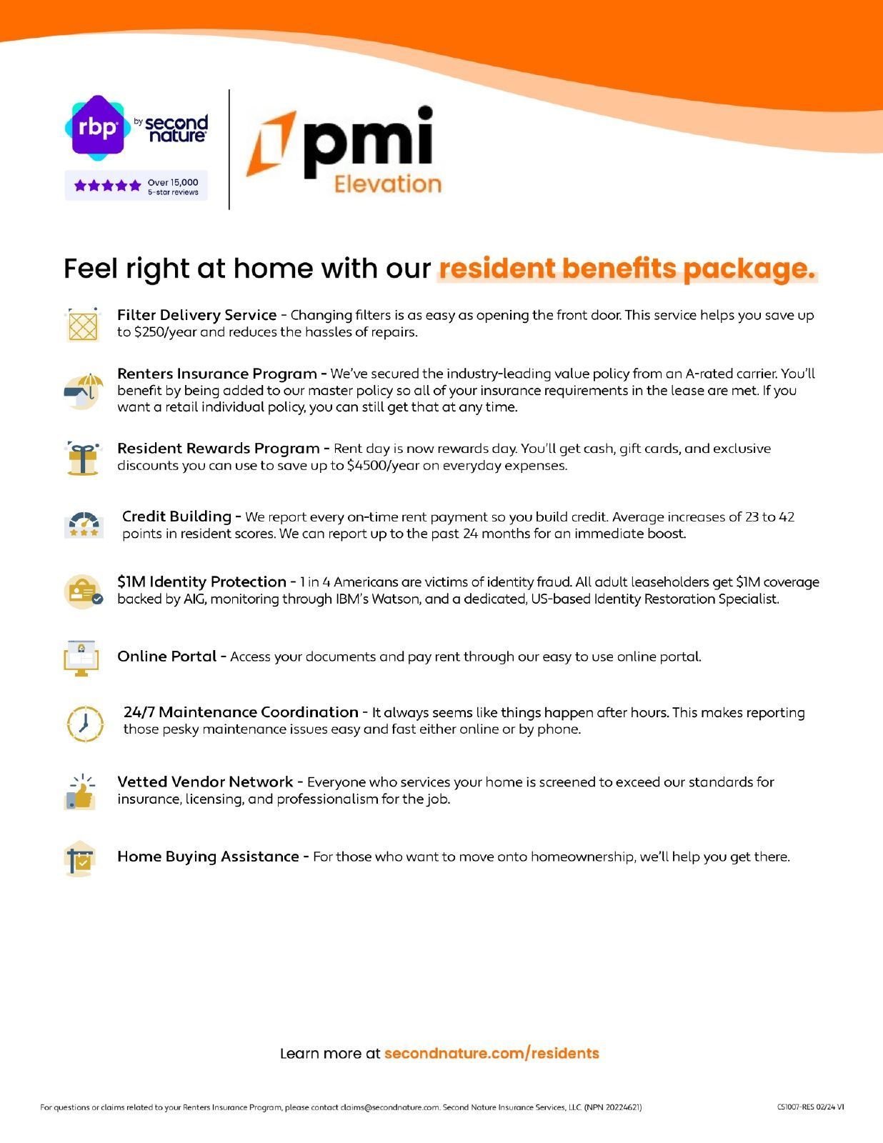At PMI Elevation, we strive to provide an experience that is cost-effective and convenient. That’s why we provide a Resident Benefits Package (RBP) to address common headaches for our renters. Our program includes home and financial service packages that provide insurance, air filter changes, credit building and more at a rate of $46.95/month, added to every property as a required program. More details upon application. Total Monthly RBP Payment*: $46.95