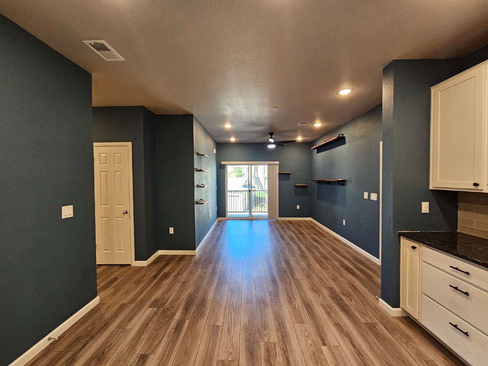 Step into a spacious and bright living area that seamlessly flows into the sleek kitchen, featuring elegant granite countertops and top-of-the-line stainless steel appliances. Whether you’re preparing a gourmet meal or enjoying a casual snack, this kitchen is designed for both functionality and style.